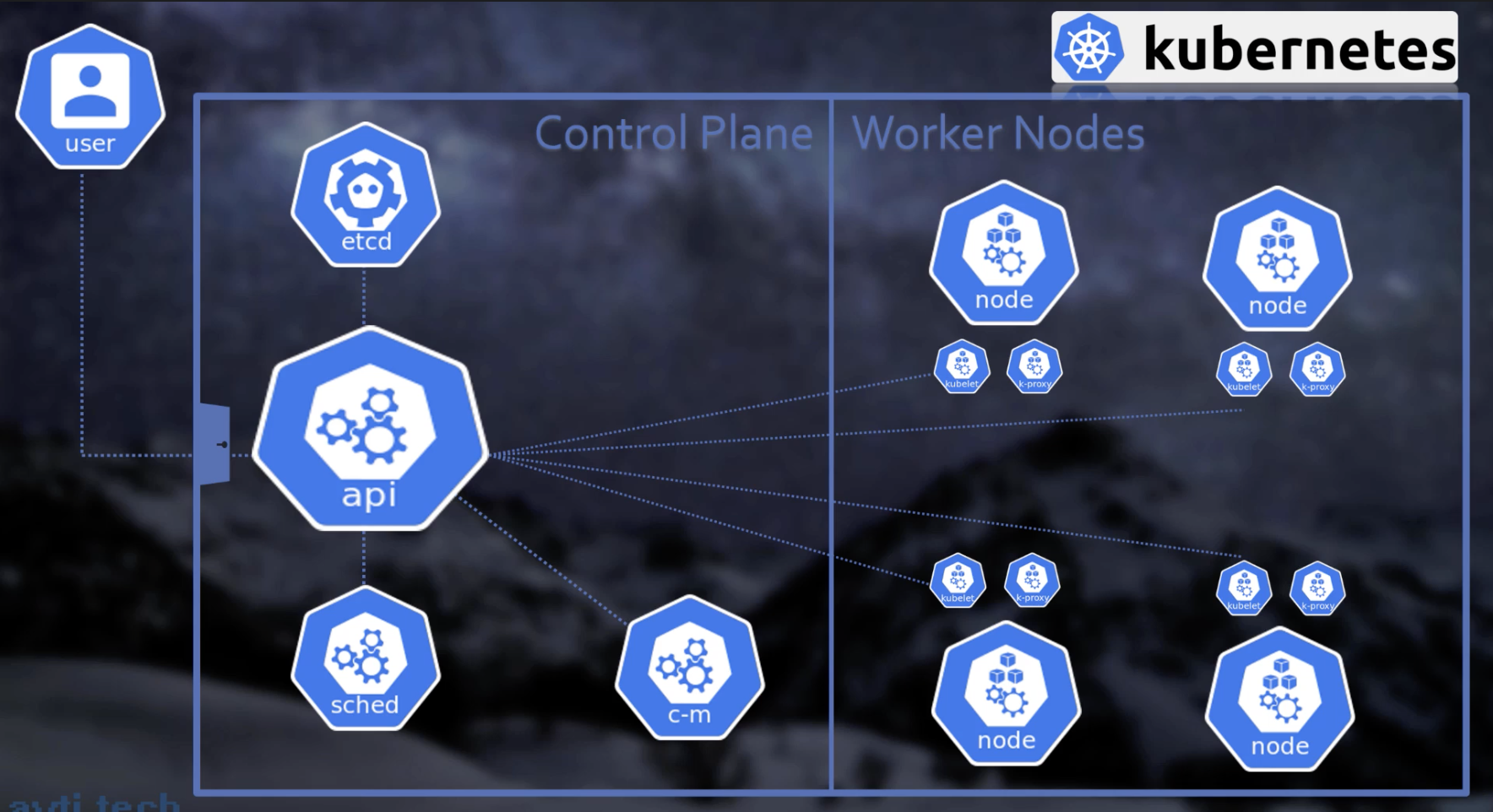 - kube-apiserver (api) –> The brain of K8s, the main communication center, entry point. We can call it a kind of Gateway. All components and nodes communicate through kube-apiserver. Also, kube-apiserver provides communication between the outside world and the platform. It is the only component that can communicate with everyone to this extent. It handles Authentication and Authorization.
