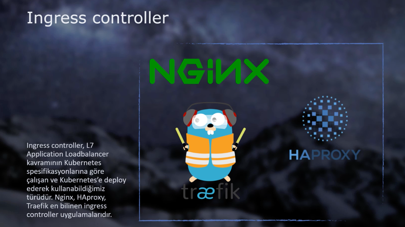 Ingress Controller refers to load balancer applications like Nginx, Traefik, or KrakenD that can be deployed. Organizations select one of these applications, deploy it to the Kubernetes cluster, and expose it externally by setting up a LoadBalancer service. This provides the application with a public IP, enabling complete user communication through this IP address.