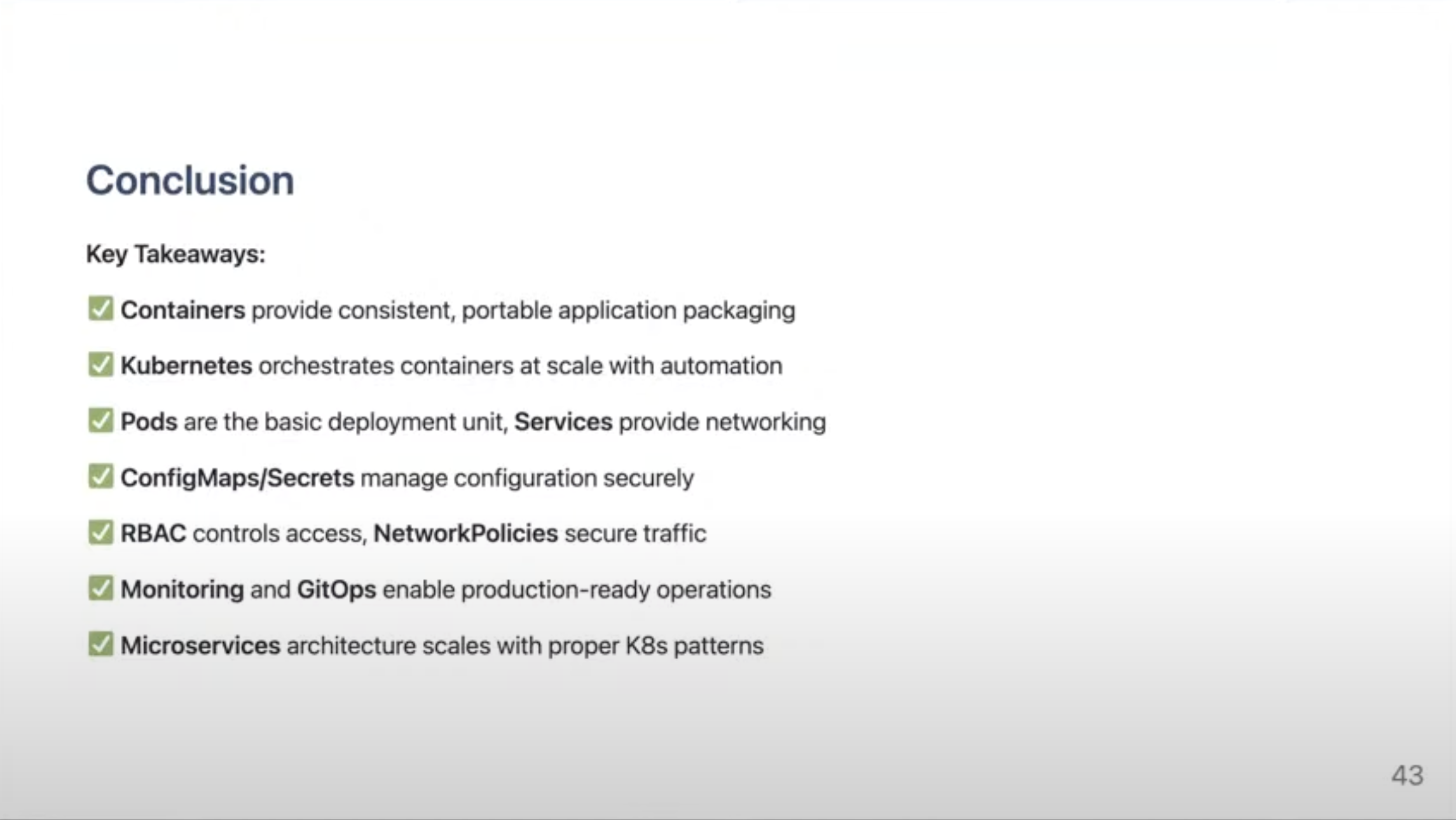 Kubernetes Presentation Docker & Kubernetes for Developers A Comprehensive Guide to Container Orchestration References Docker & Kubernetes Education on YouTube Kubernetes Documentation Docker Documentation Kubectl Cheatsheet