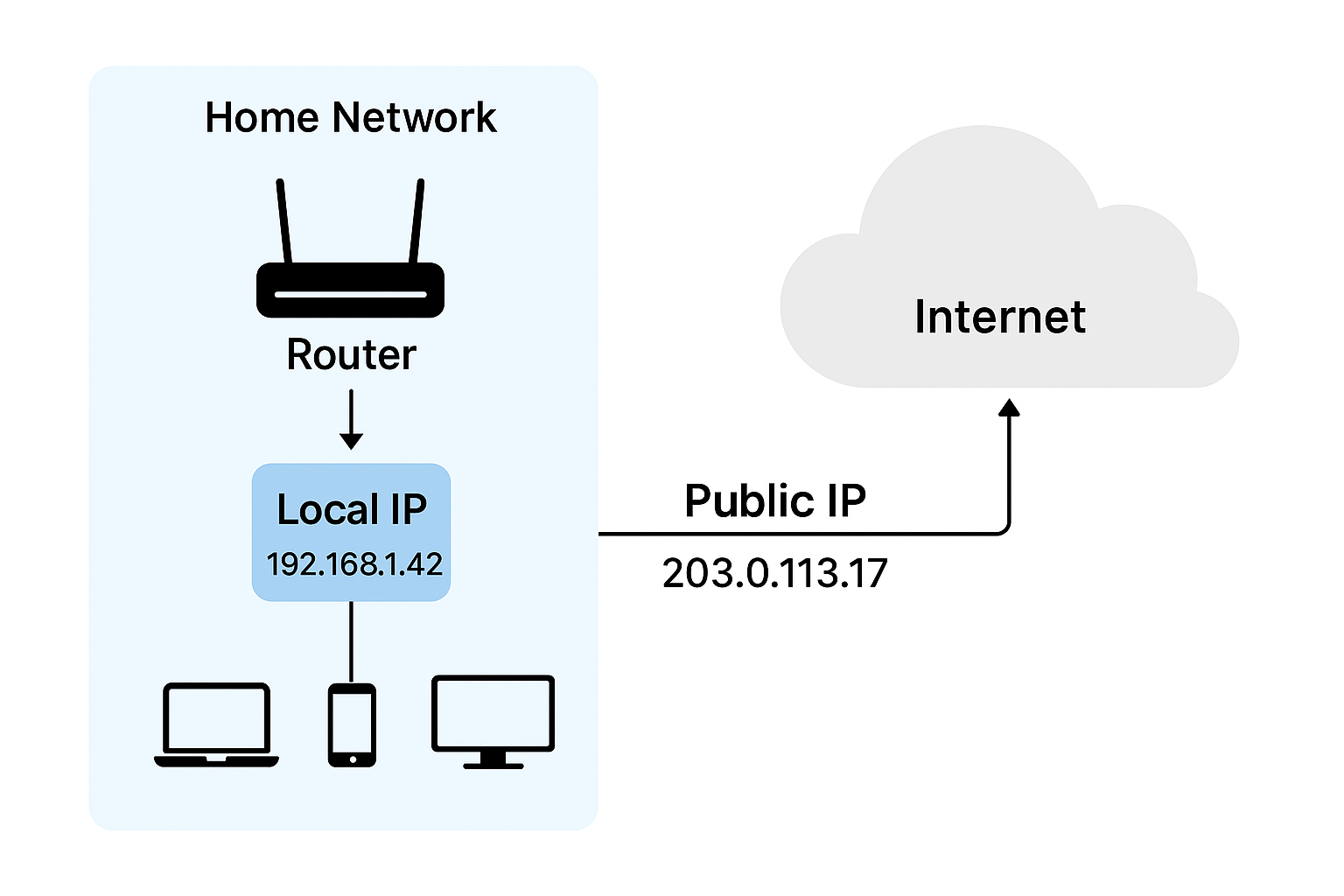 - All devices inside your home share this public IP when accessing websites or online services.